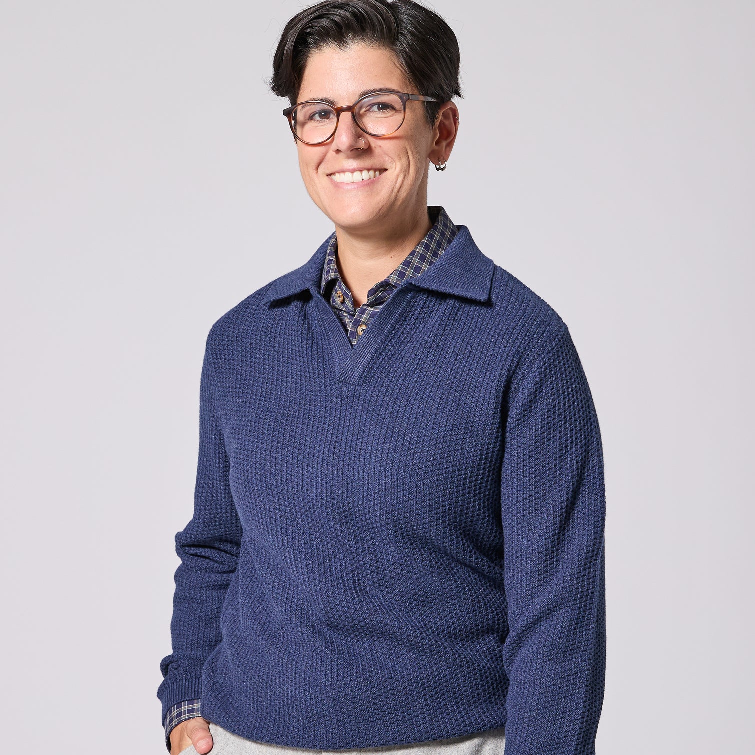 Marine Waffle Johnny Collar Polo